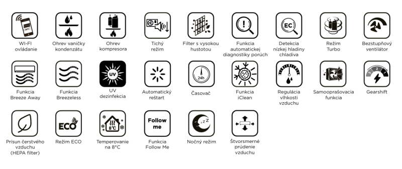 - SEER/SCOP (chladenie/kúrenie): 8,8/4,6